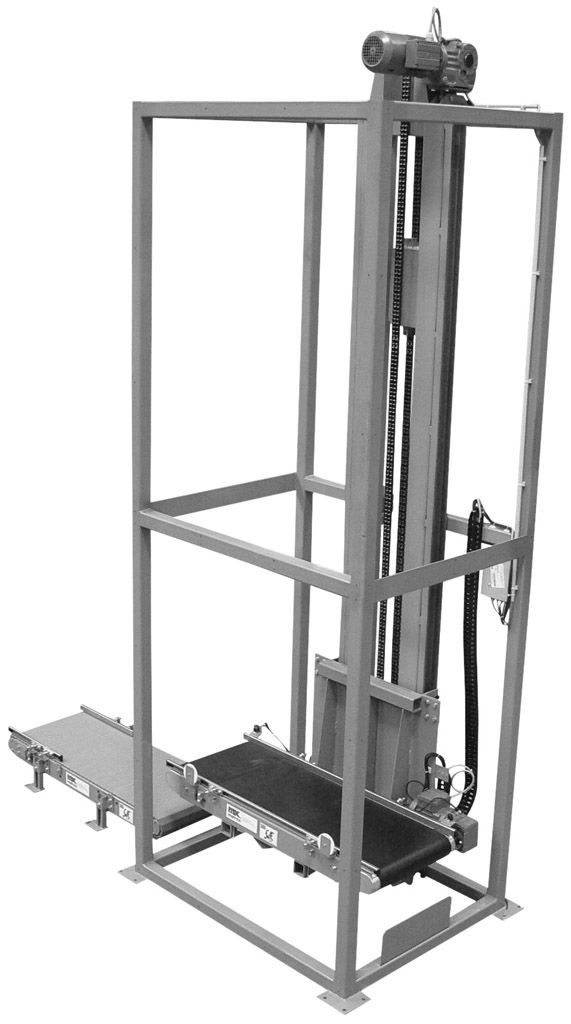 Le convoyeur vertical est aussi appelé convoyeur élévateur.
